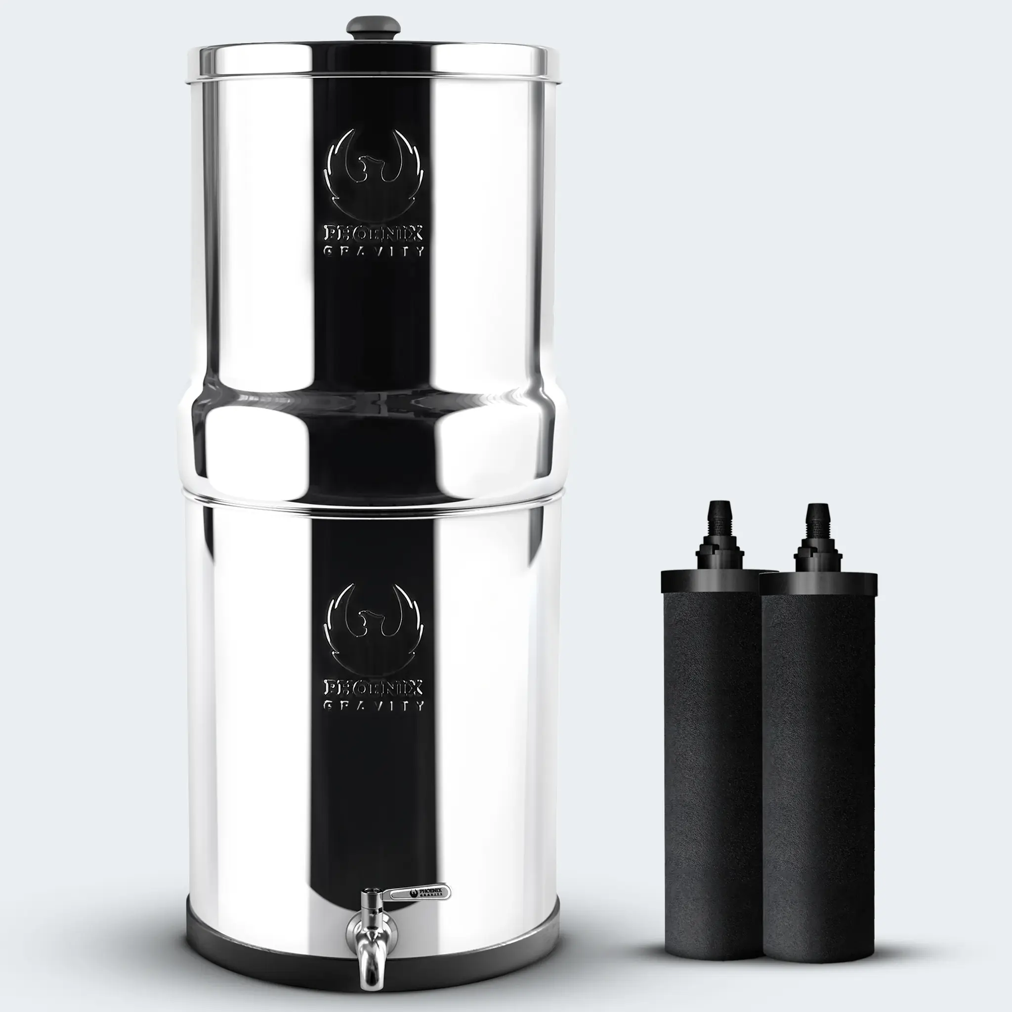 Phoenix Gravity-filters combineren eenvoud met hoogwaardige technologie. Het water stroomt langzaam door twee actieve-koolfilters op basis van kokosnootschalen en wordt grondig gezuiverd, terwijl gezonde mineralen behouden blijven. Zuiver water. Altijd en overal.